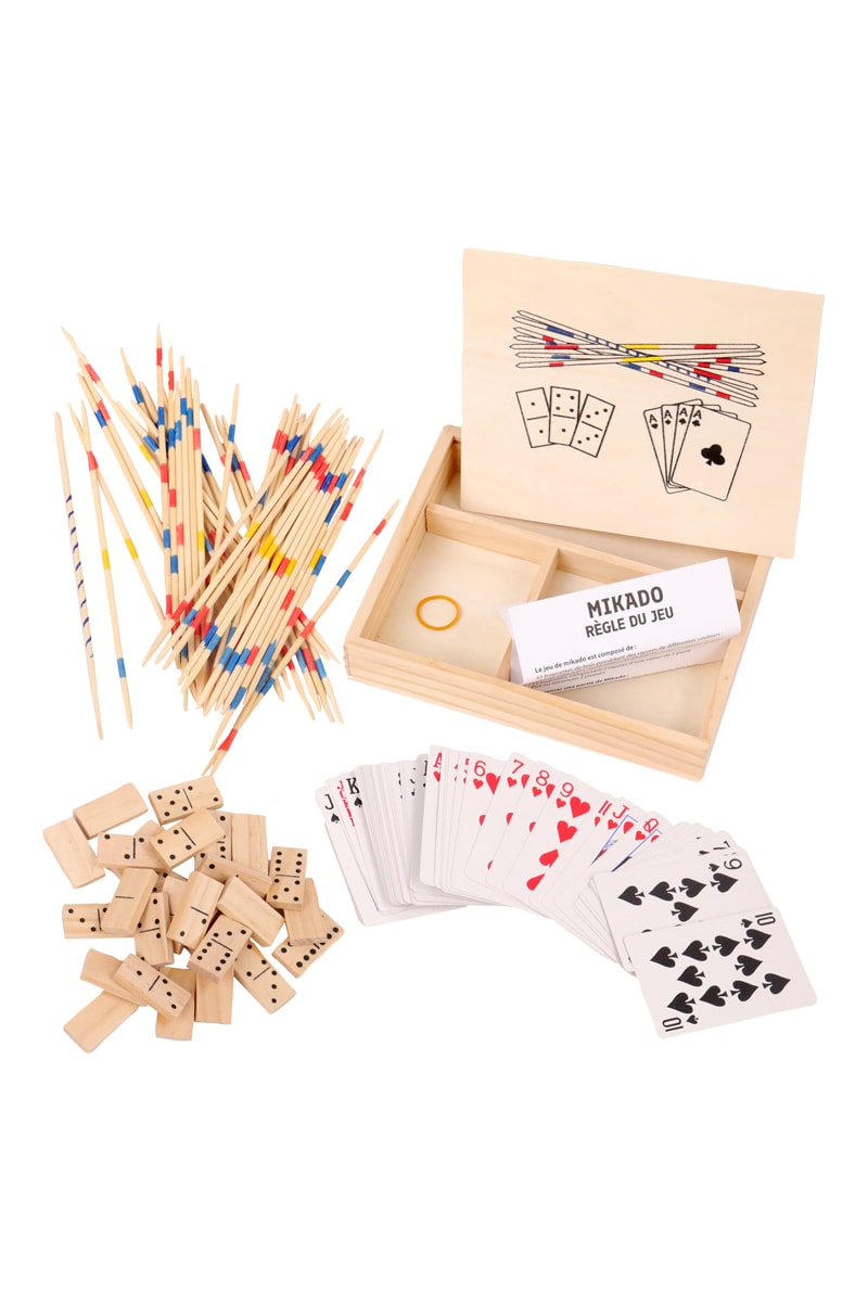 Jeu 3-en-1 mikado, dominos et 54 cartes - Dès 3 ans