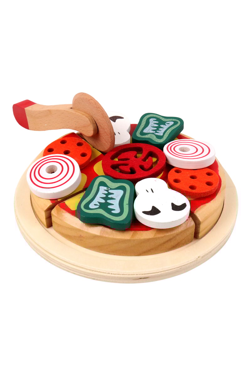 L'enfant utilise le plateau et la roulette pour découper les parts de pizza, favorisant la motricité fine et l'imagination en imitant la préparation de repas.