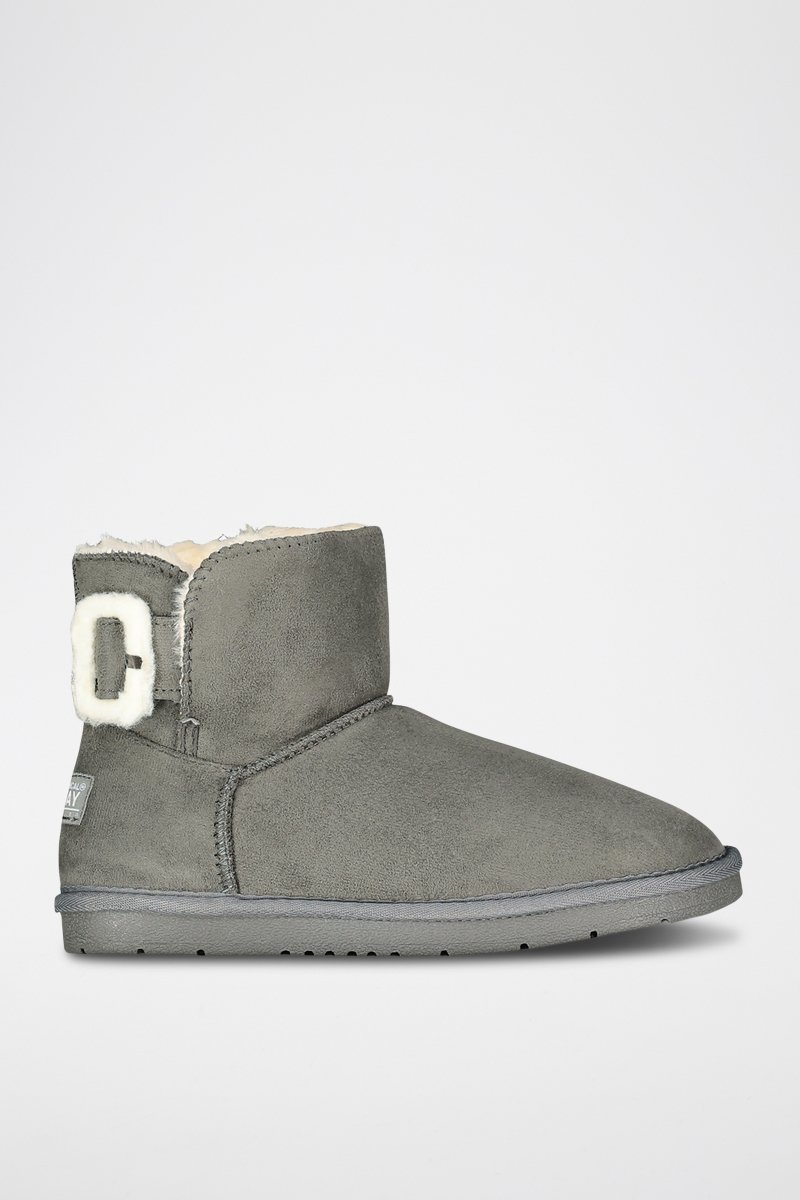 Boucle décorative en fourrure synthétique contrastante sur le côté.