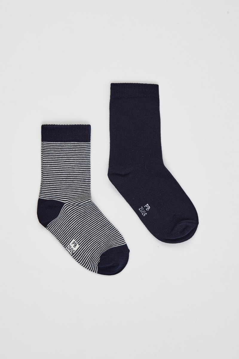 2 paires de chaussettes dont 1 avec motifs à rayures.