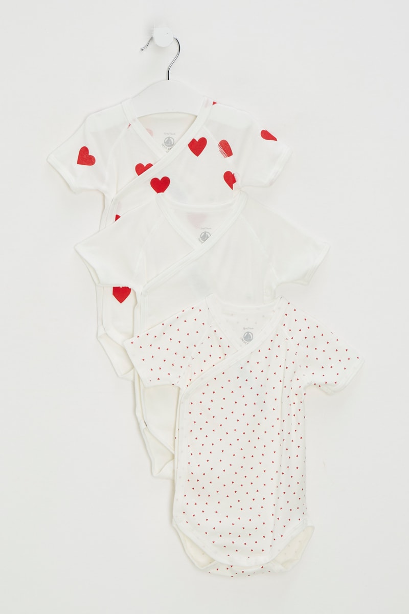 3 bodys dont 2 à motifs cœurs.