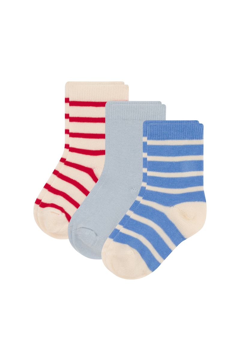 3 paires de chaussettes dont 2 à motifs à rayures.