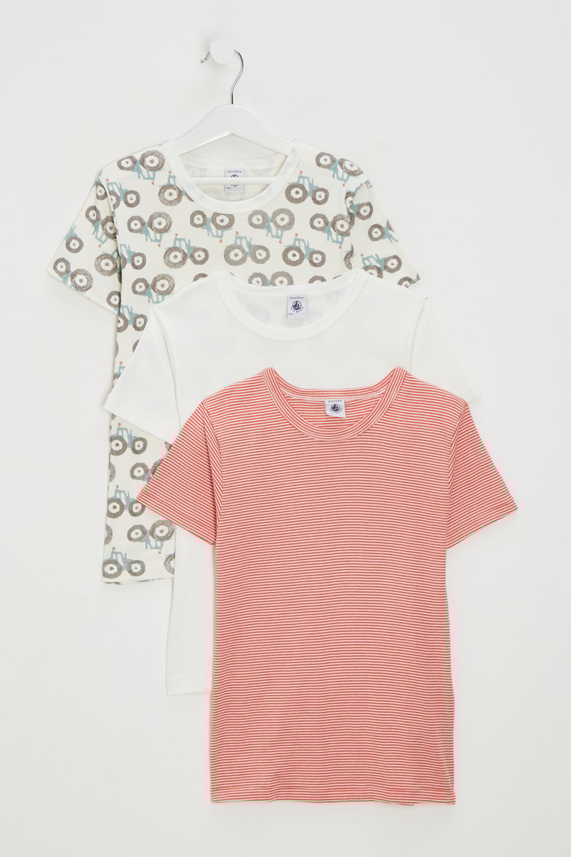 3 t-shirts dont 1 à motifs fantaisie et 1 à motifs à rayures.