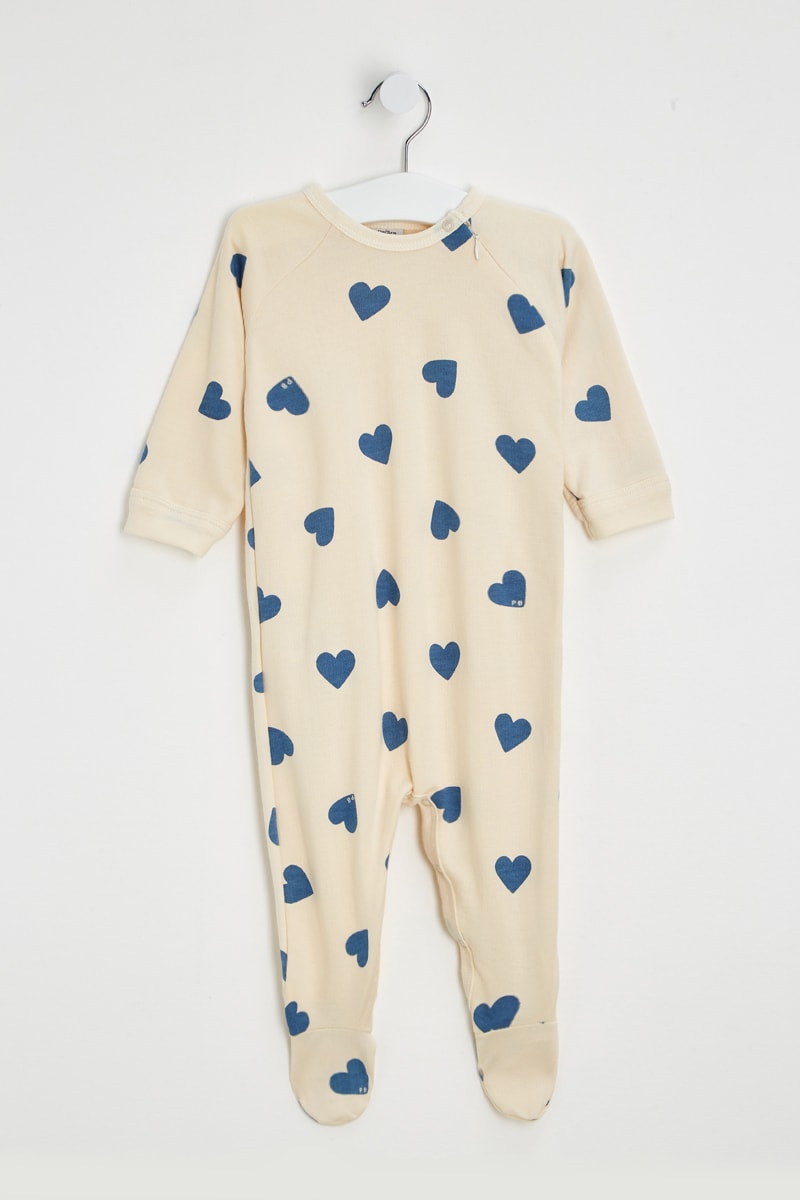 Grenouillère - Ecru et bleu foncé