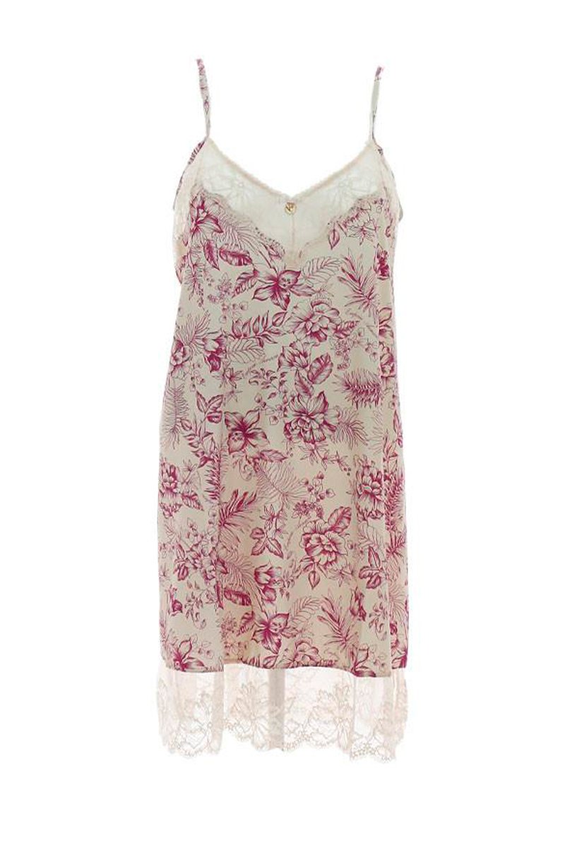 Dentelle à l'encolure et à la base.