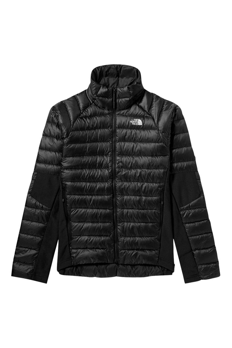 Vêtement hybride combinant un garnissage en duvet 800 et des panneaux polaires Power Stretch.