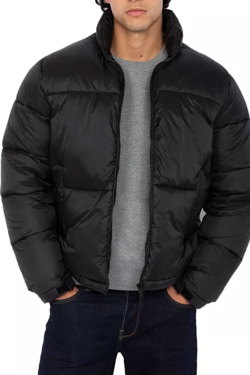 Doudoune à manches longues avec languette réglable pressionnée dont 1 avec patch et logo.