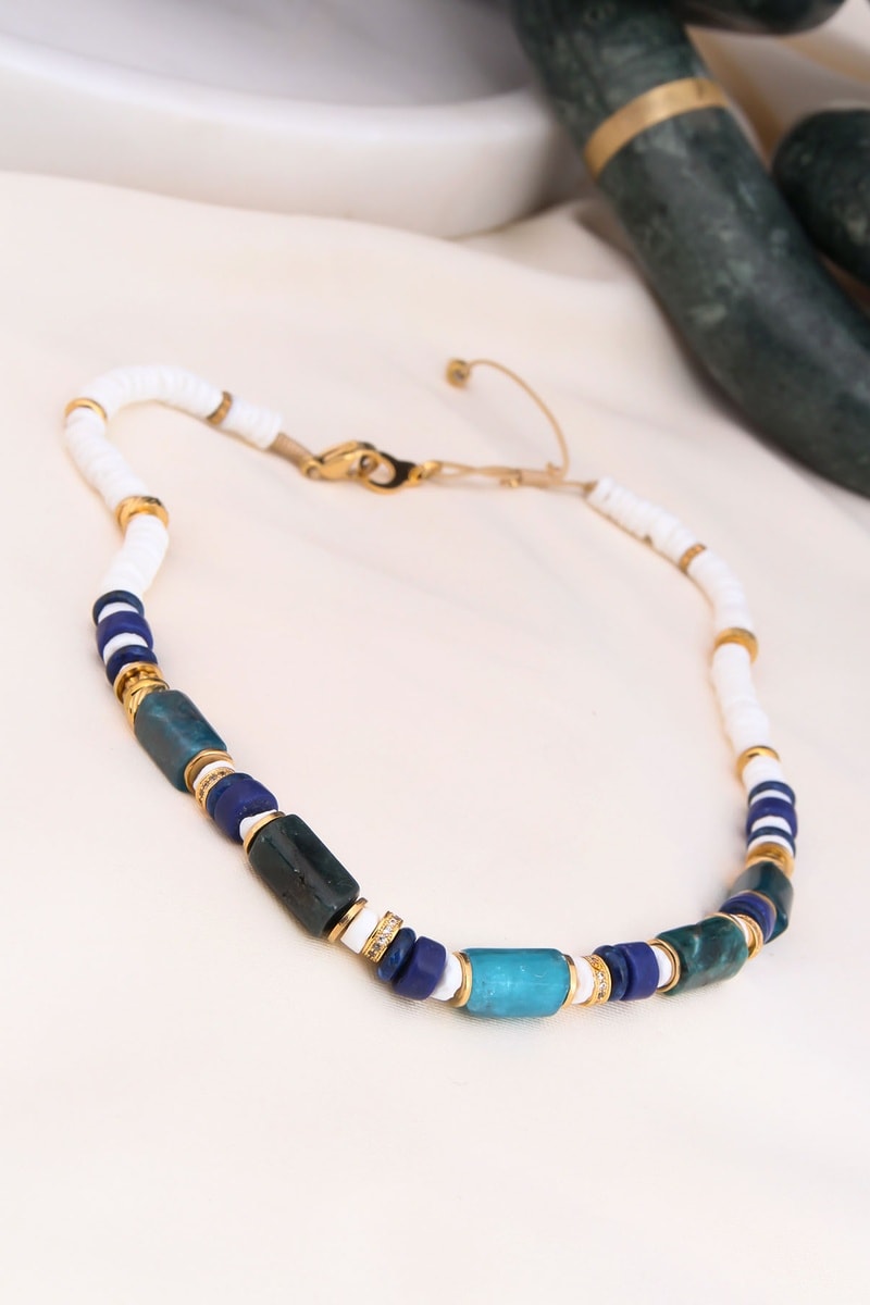 Collier - Plaqué or jaune, lapis-lazulis et jaspes