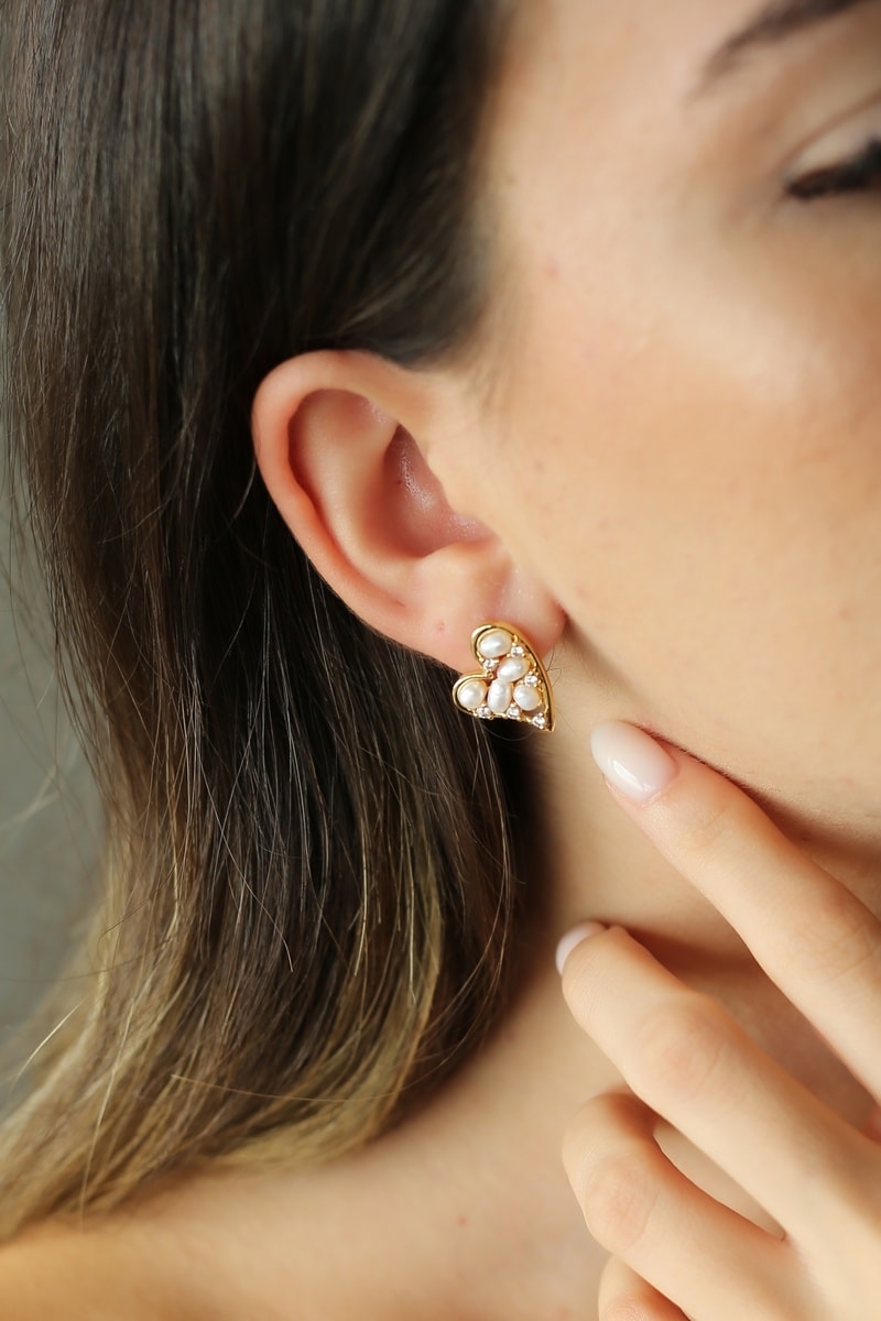 Matière : laiton plaqué or jaune, acier inoxydable plaqué or jaune, perles de culture et zircons