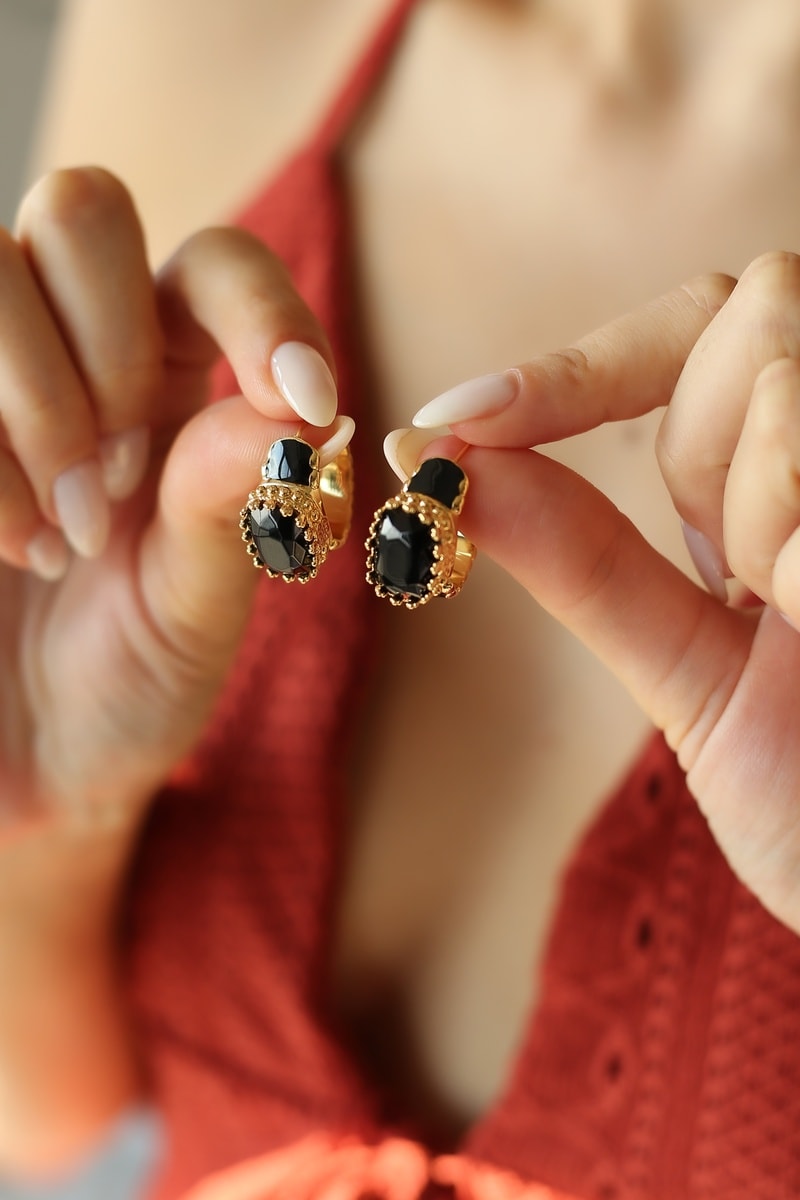 Matière : laiton plaqué or jaune, acier inoxydable plaqué or jaune et onyx