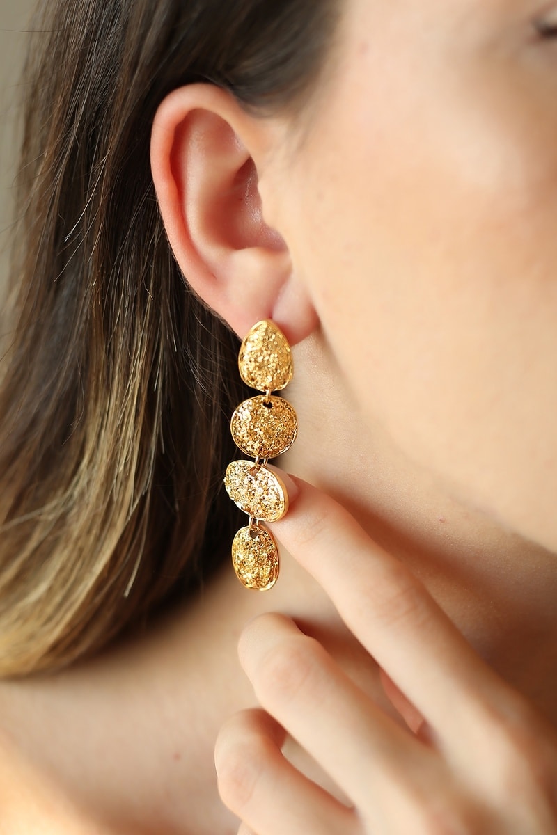 Boucles d’oreilles pendantes en plaqué or jaune.