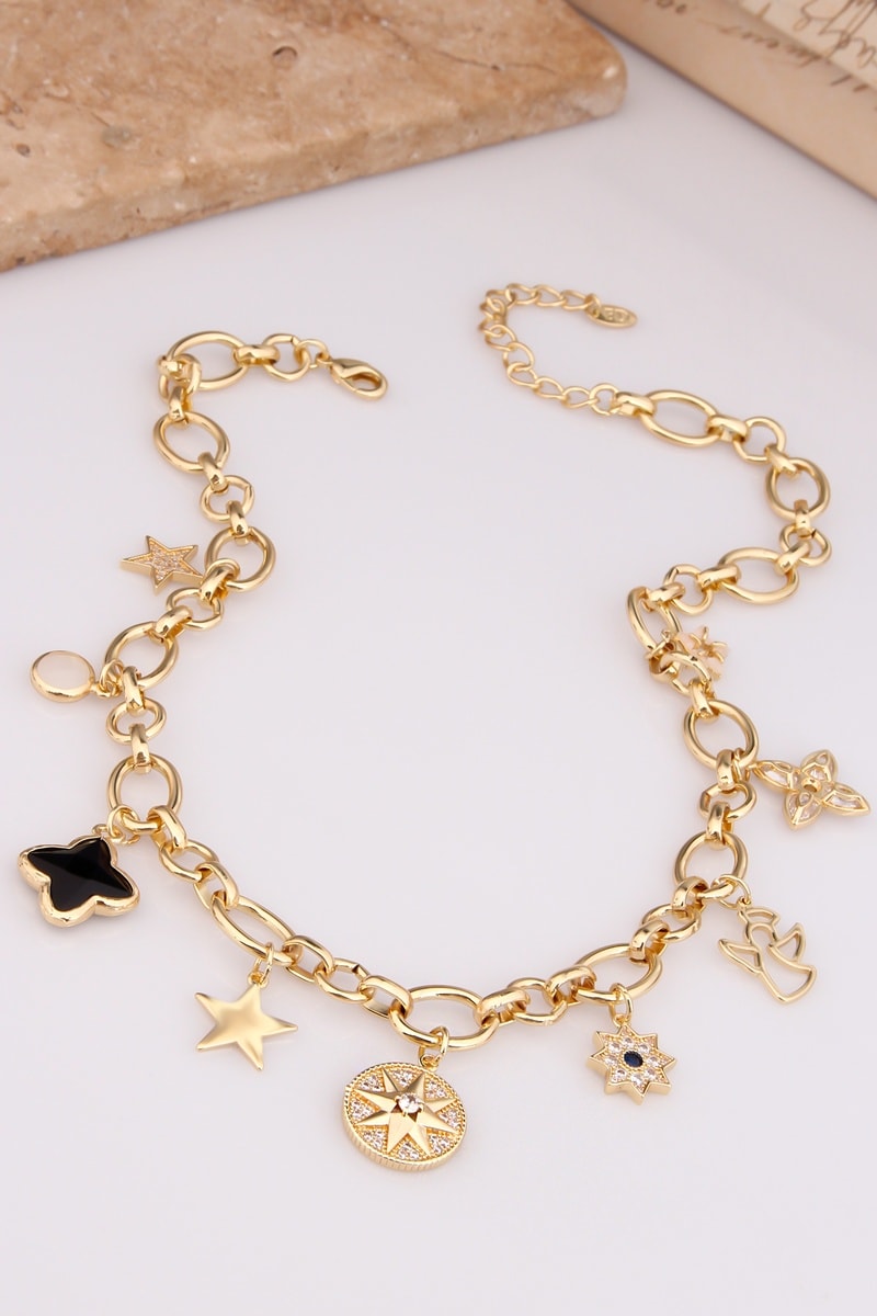 Matière : acier inoxydable plaqué or jaune, laiton plaqué or jaune et zircons