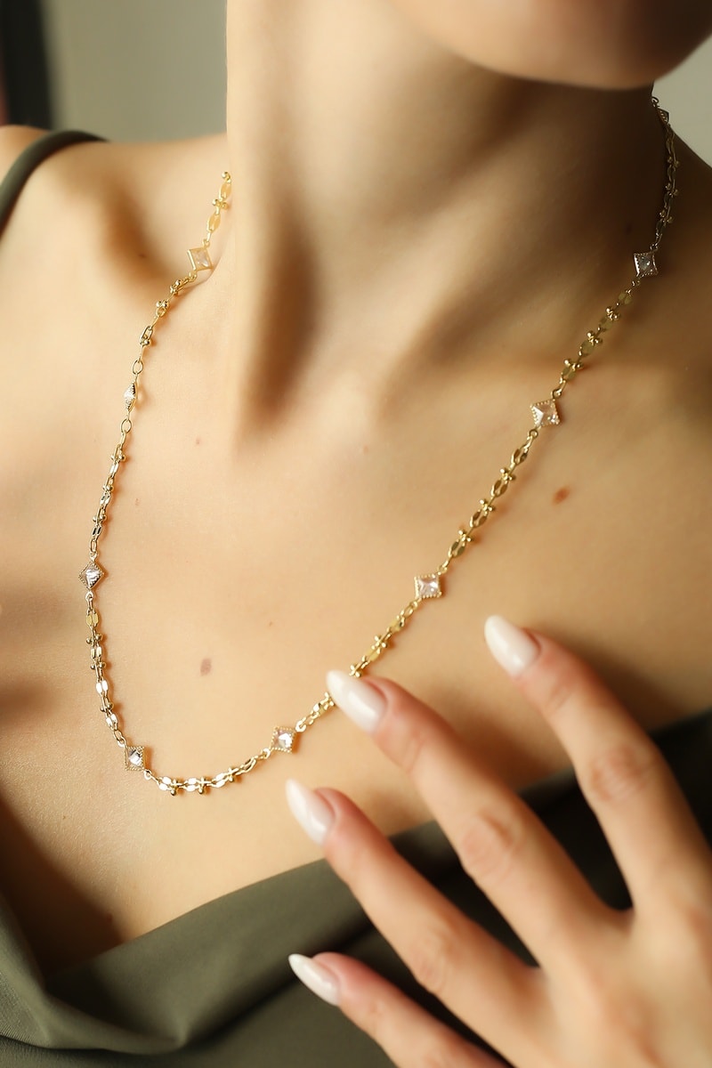 Matière : acier inoxydable plaqué or jaune, laiton plaqué or jaune et zircons