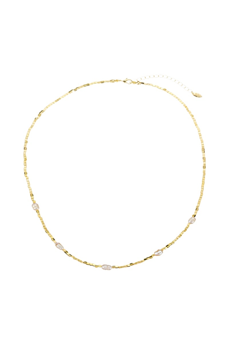 Collier en plaqué or jaune serti de 5 perles d’imitation.