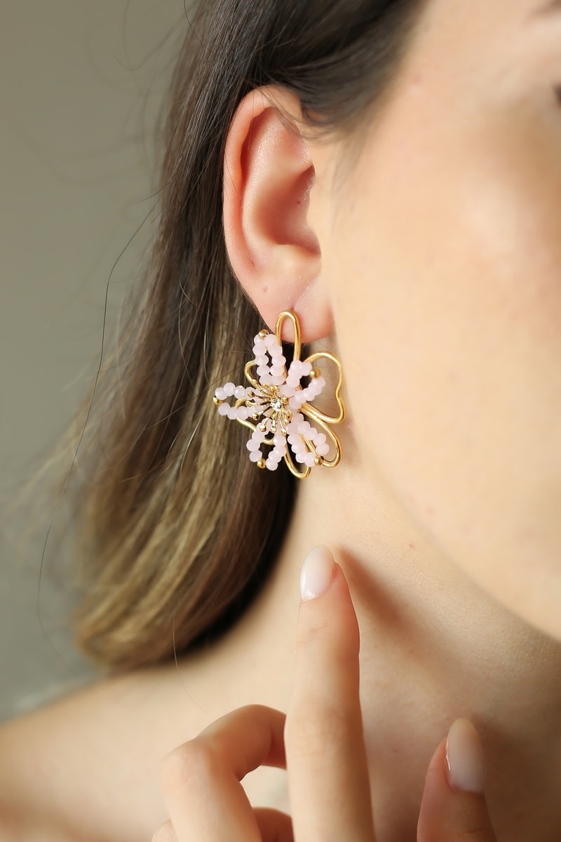 Puces en plaqué or jaune serties de cristaux.