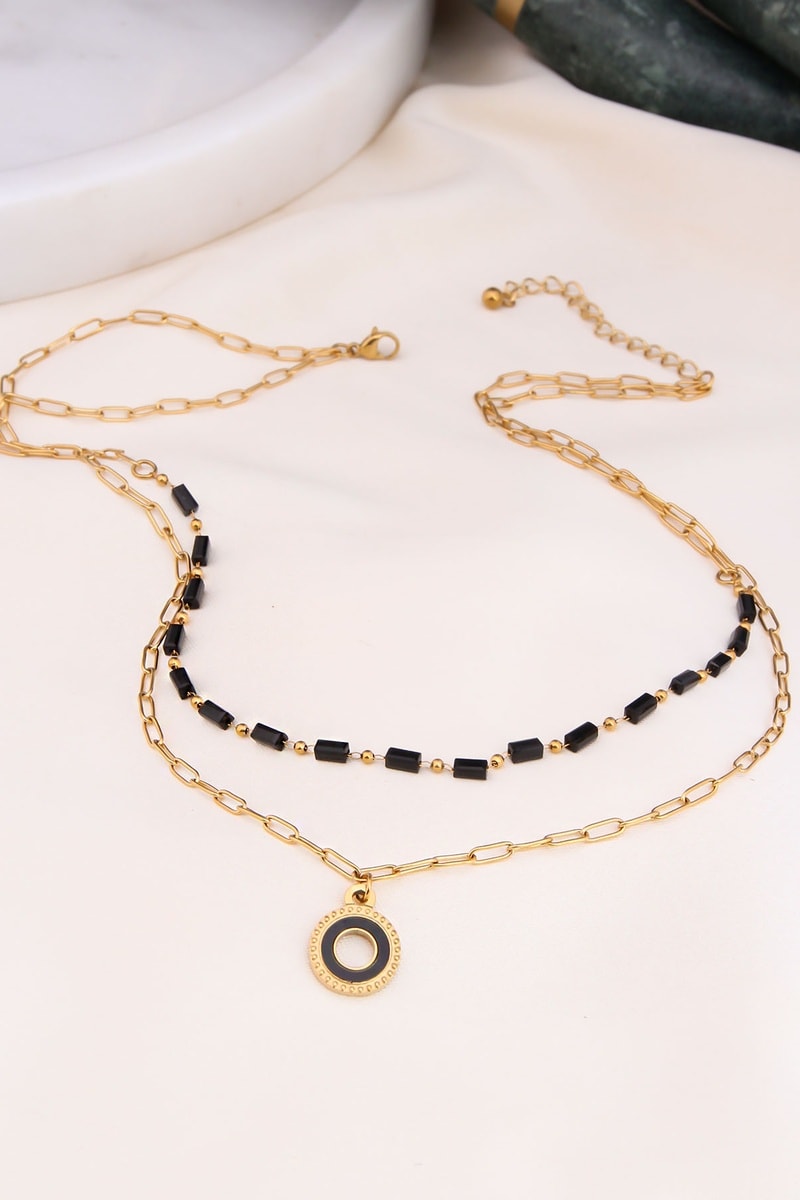 Collier multi rangs en plaqué or jaune serti de 18 zircons.