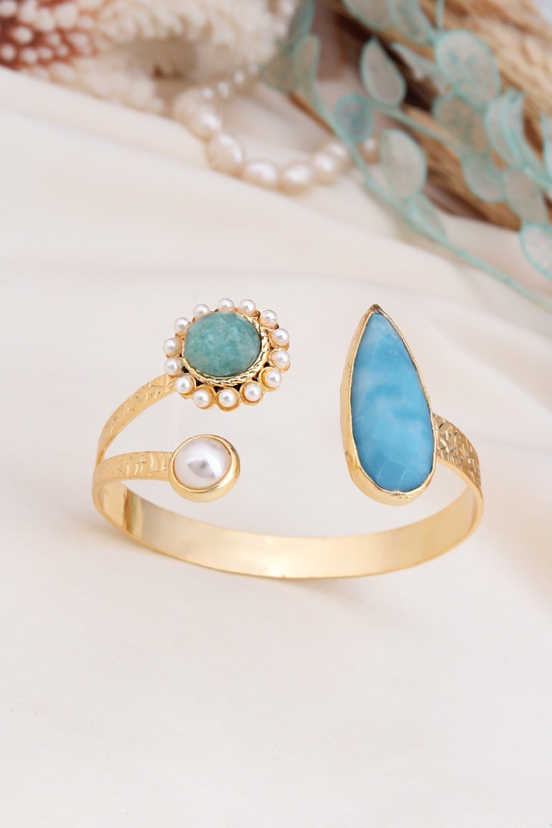 Jonc ouvert serti de 2 larimars Hypoallergénique.