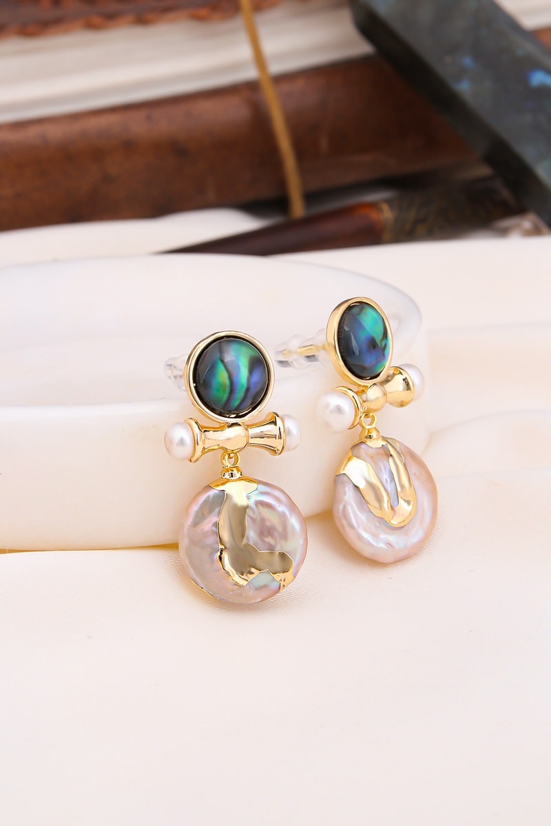 Boucles d’oreilles serties de 3 perles de culture et de nacre.