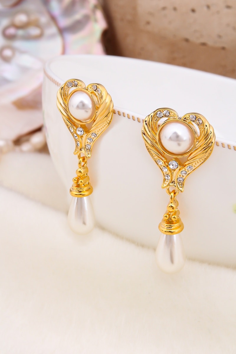 Boucles d’oreilles pendantes serties de 11 cristaux et 2 perles de culture.