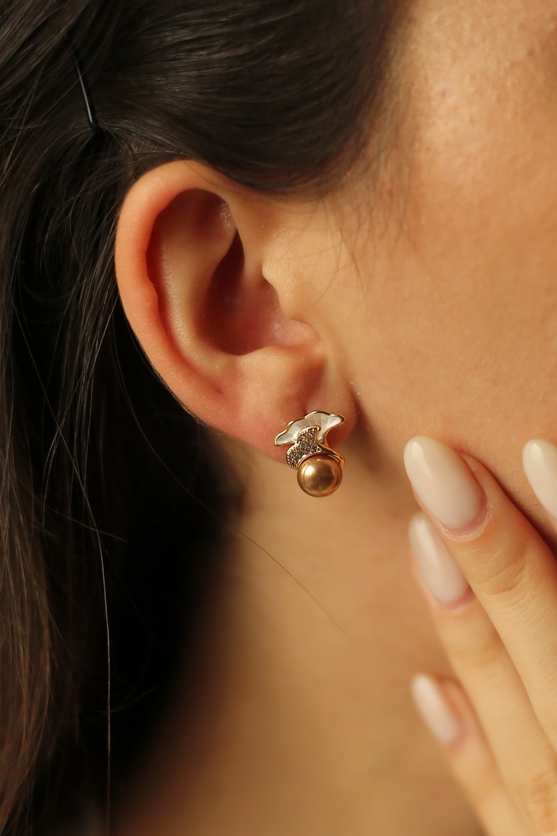 Boucles d’oreilles serties d’une perle de culture et de cristaux.