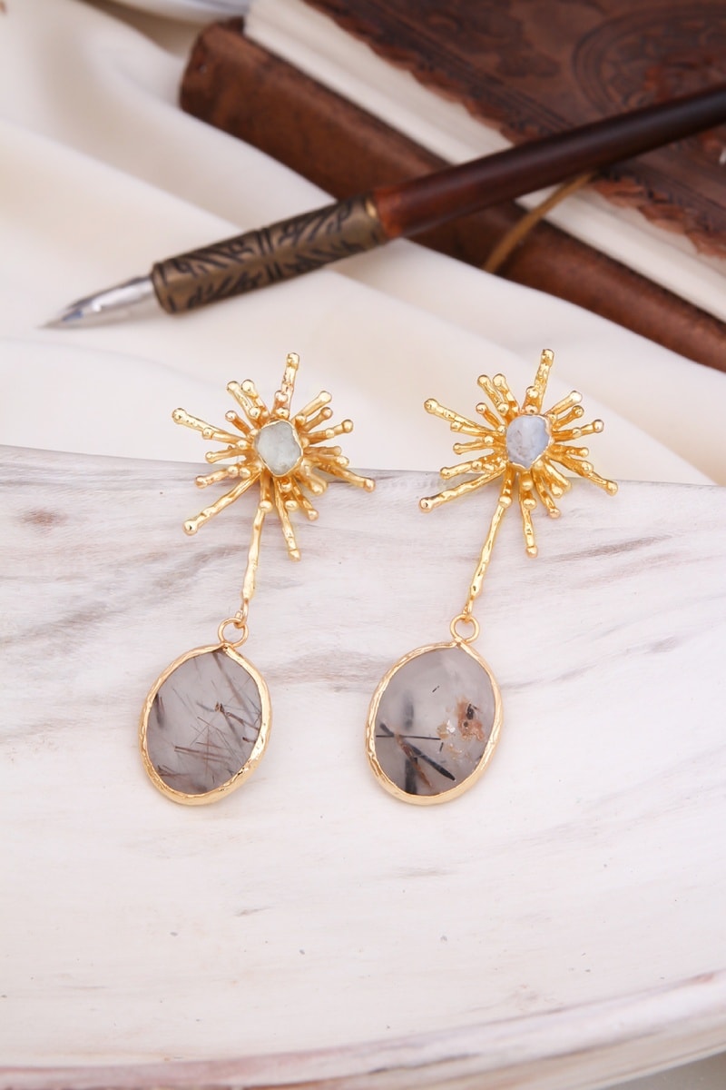 Boucles d’oreilles pendantes serties de 2 rutiles.