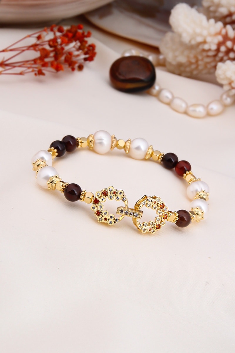 Bracelet serti de 6 agates et de 6 perles de culture.