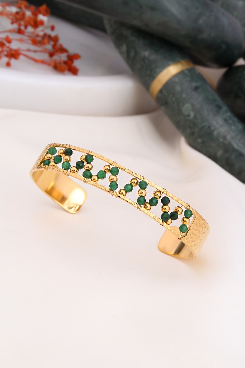 Jonc ouvert en plaqué or jaune serti de 20 cristaux.