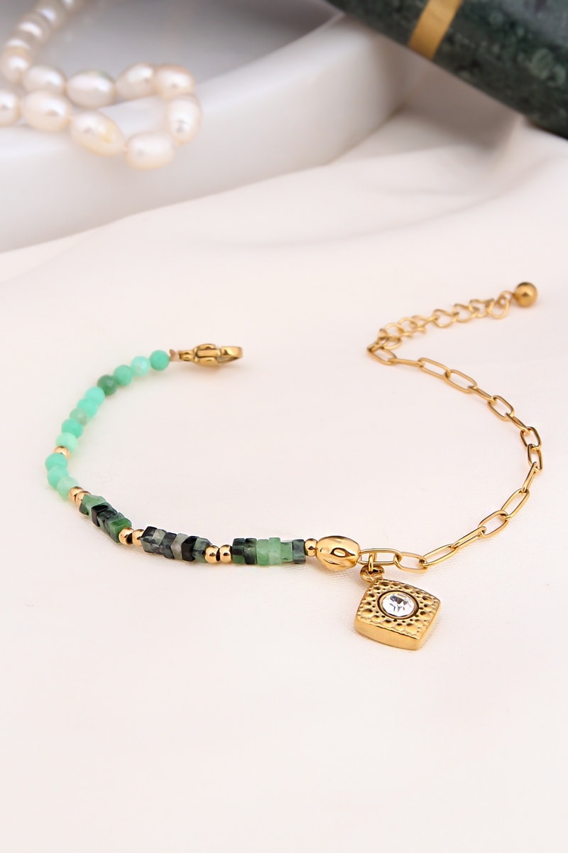 Coloris cristaux : vert d’eau, vert foncé, vert clair et blanc