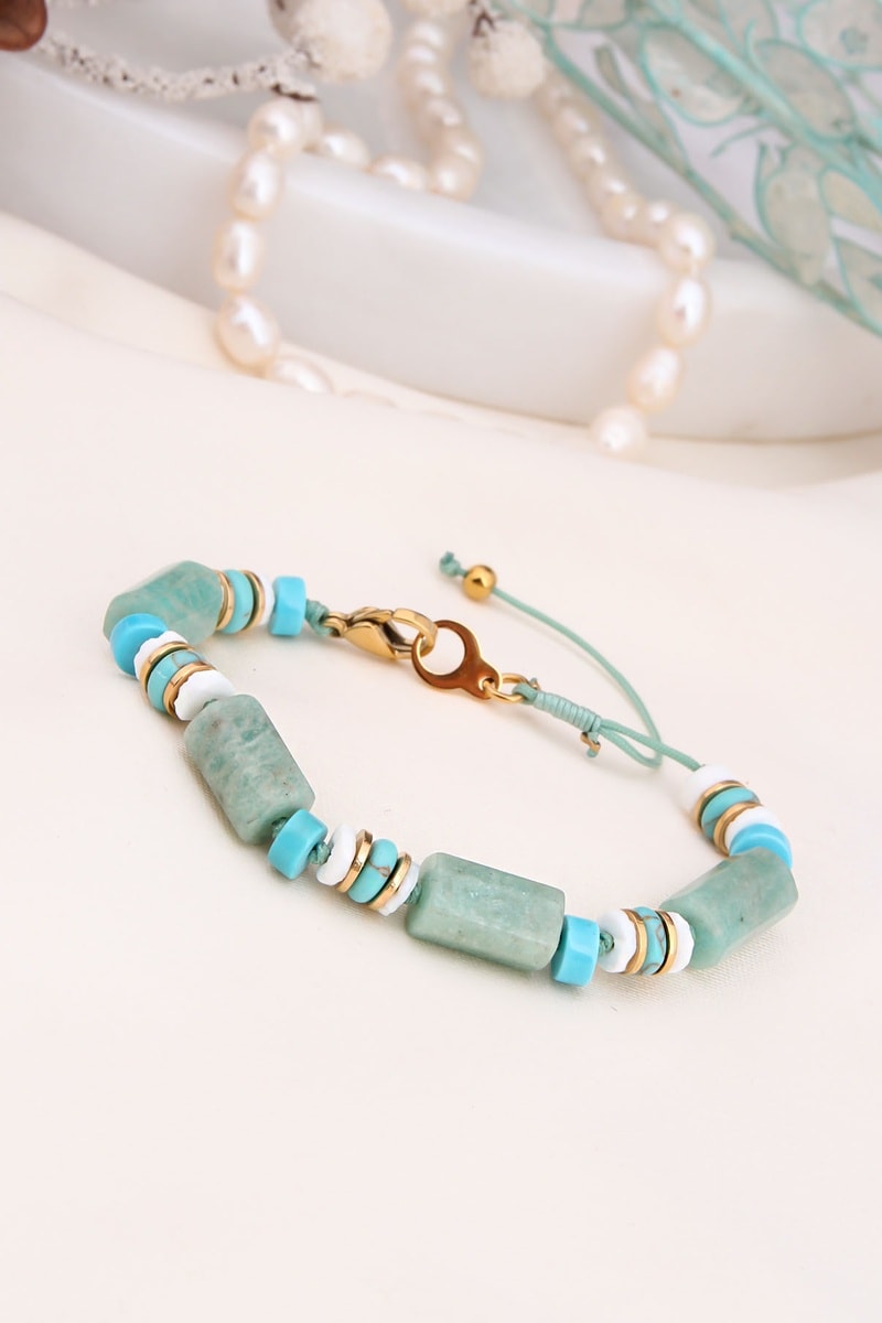 Matière : acier inoxydable plaqué or jaune et turquoises