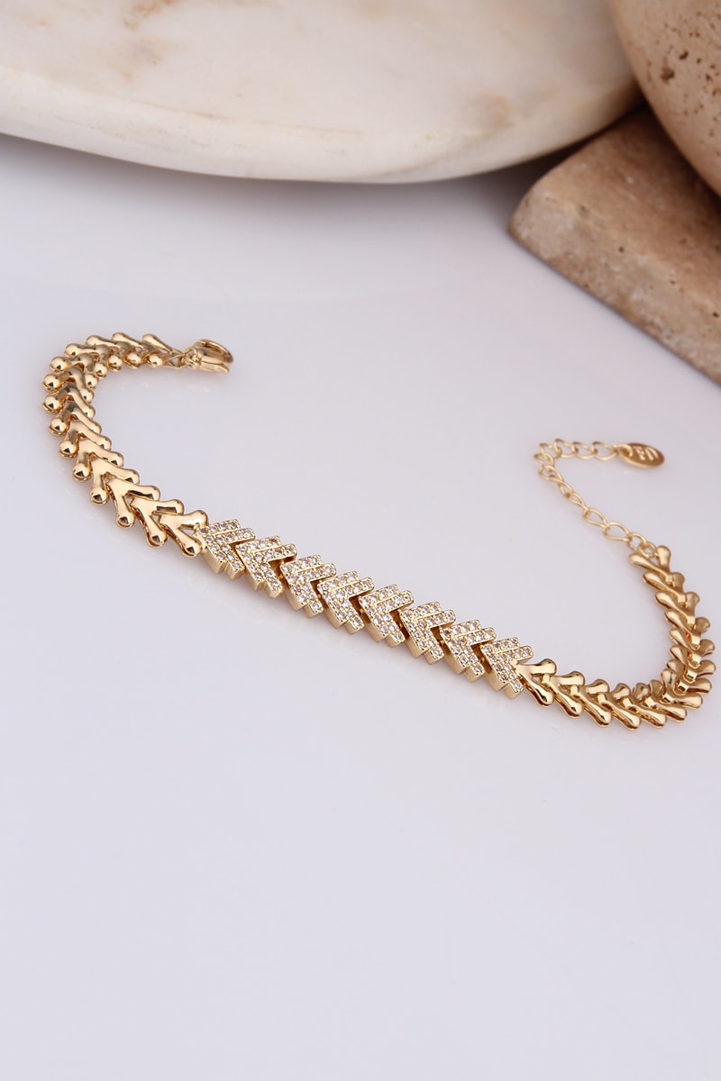 Bracelet en plaqué or jaune serti de 8 zircons.