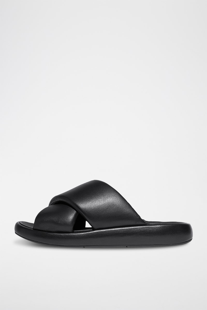 Mules à talons en cuir.
