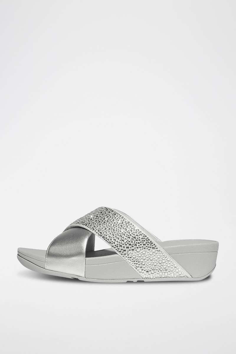 Mules à talons compensées en cuir Lulu - Argenté