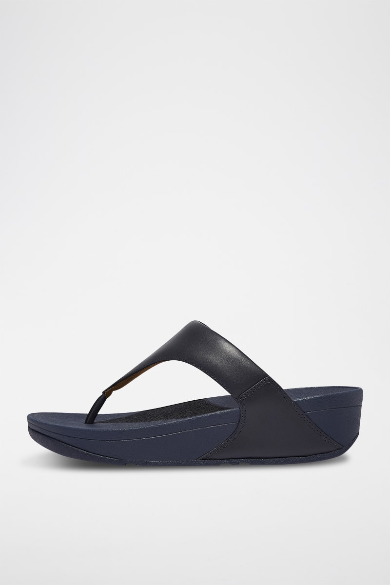 Tongs compensées en cuir Lulu - Bleu