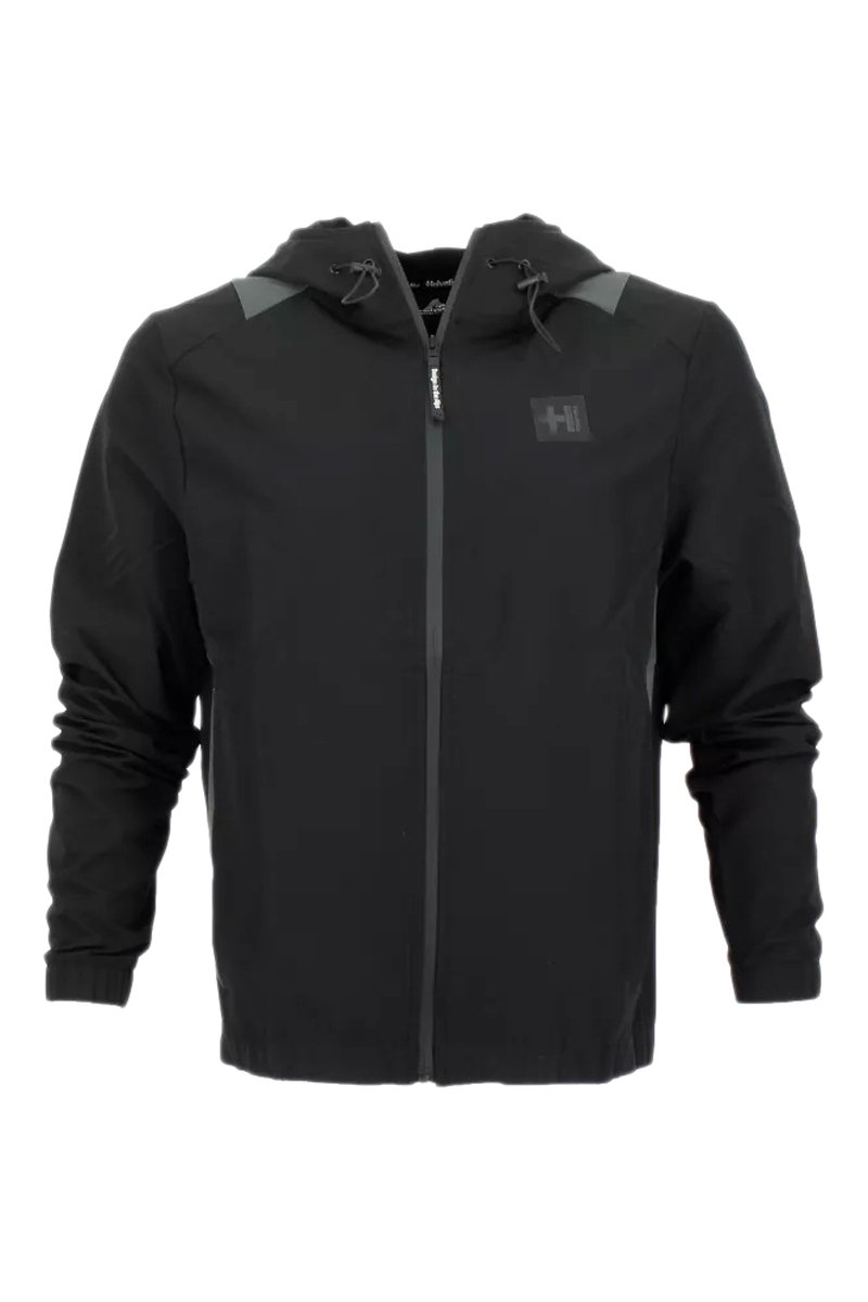 Coupe-vent à capuche avec liens de serrage et barillets.