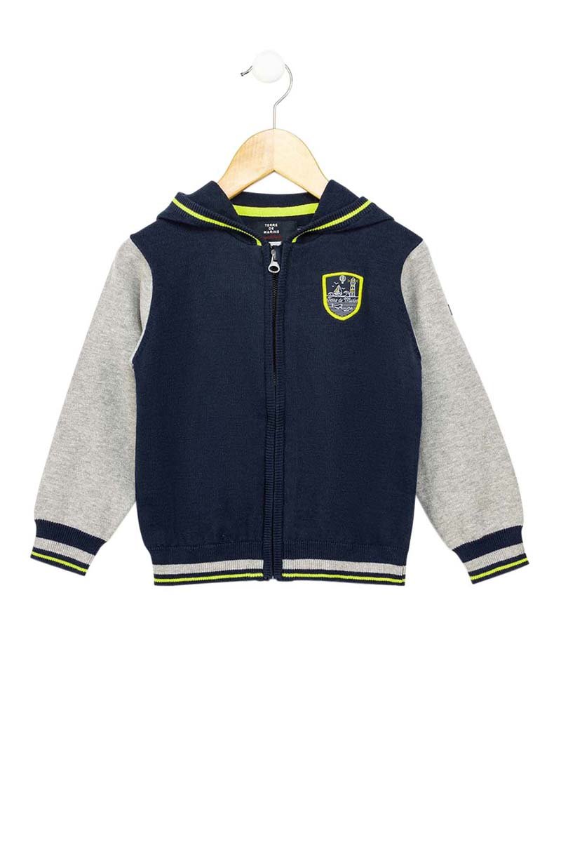 Gilet à capuche - Bleu marine et gris chiné