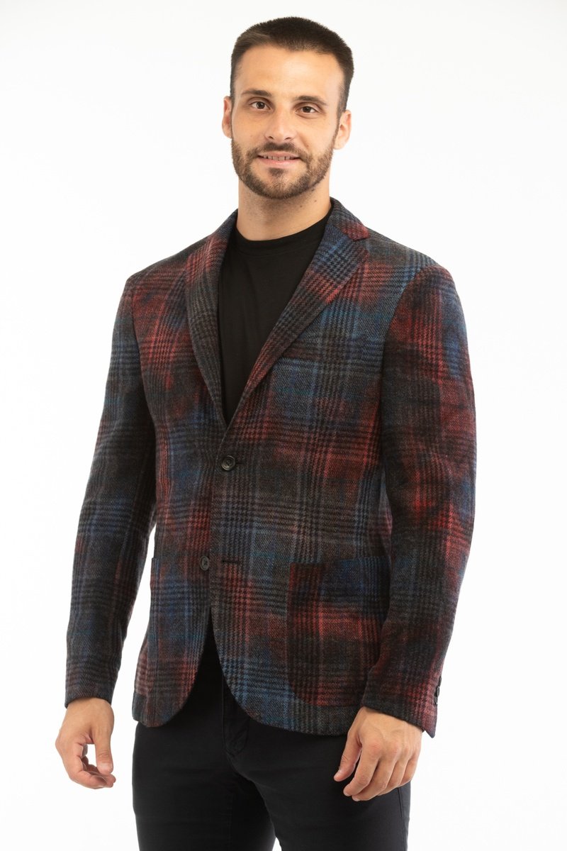 Veste de costume slim en laine vierge - Bleu - Montedoro