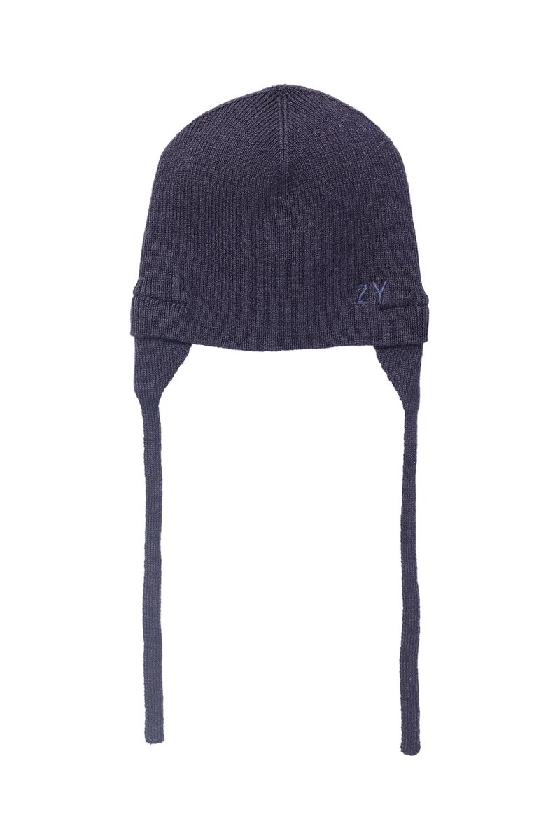 Bonnet en maille côtelée.