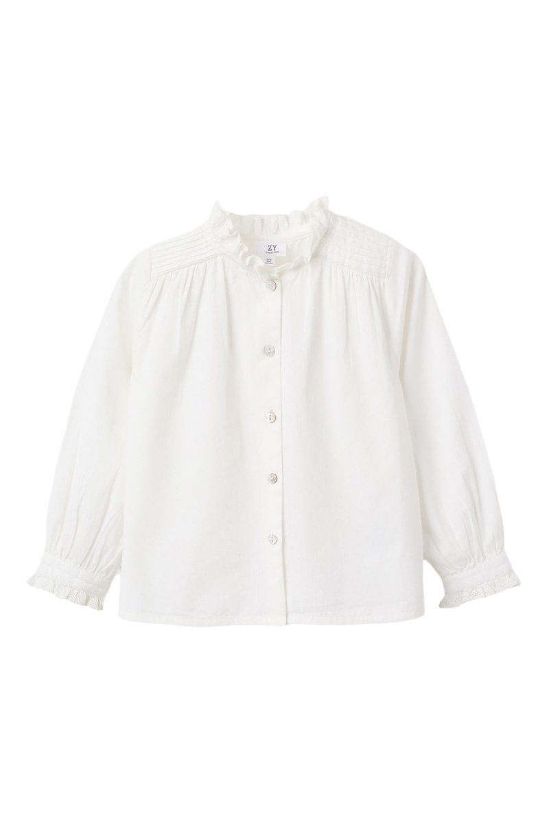 Chemisier à manches longues volantées boutonnées.