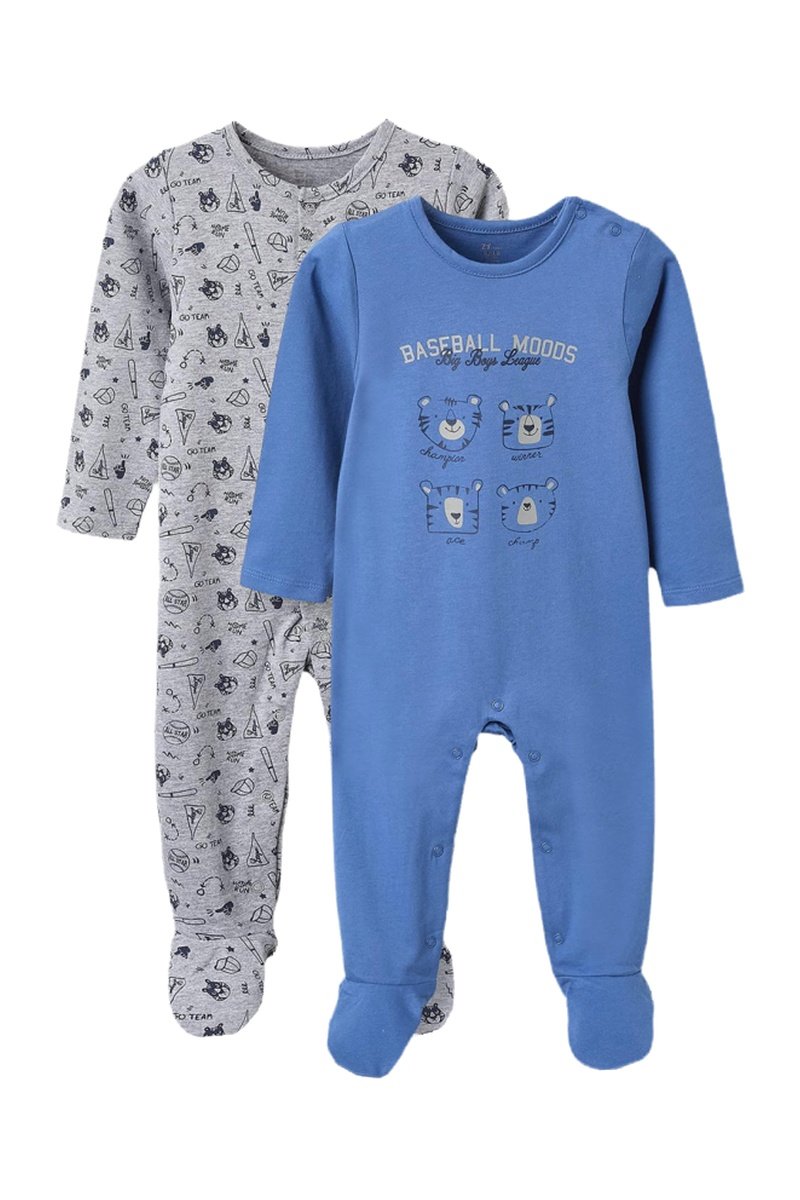 2 grenouillères - Gris clair et bleu