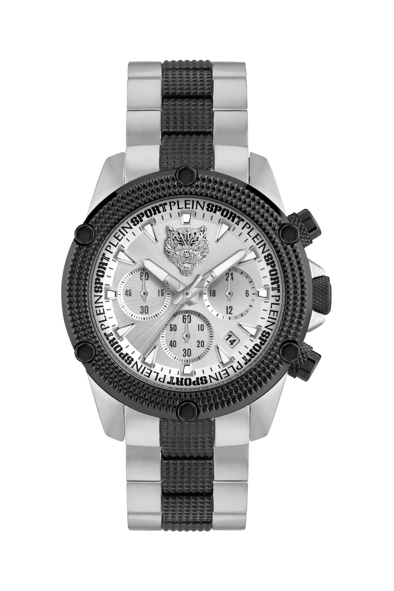 Montre à quartz en acier inoxydable - Chronographe - Argenté et noir
