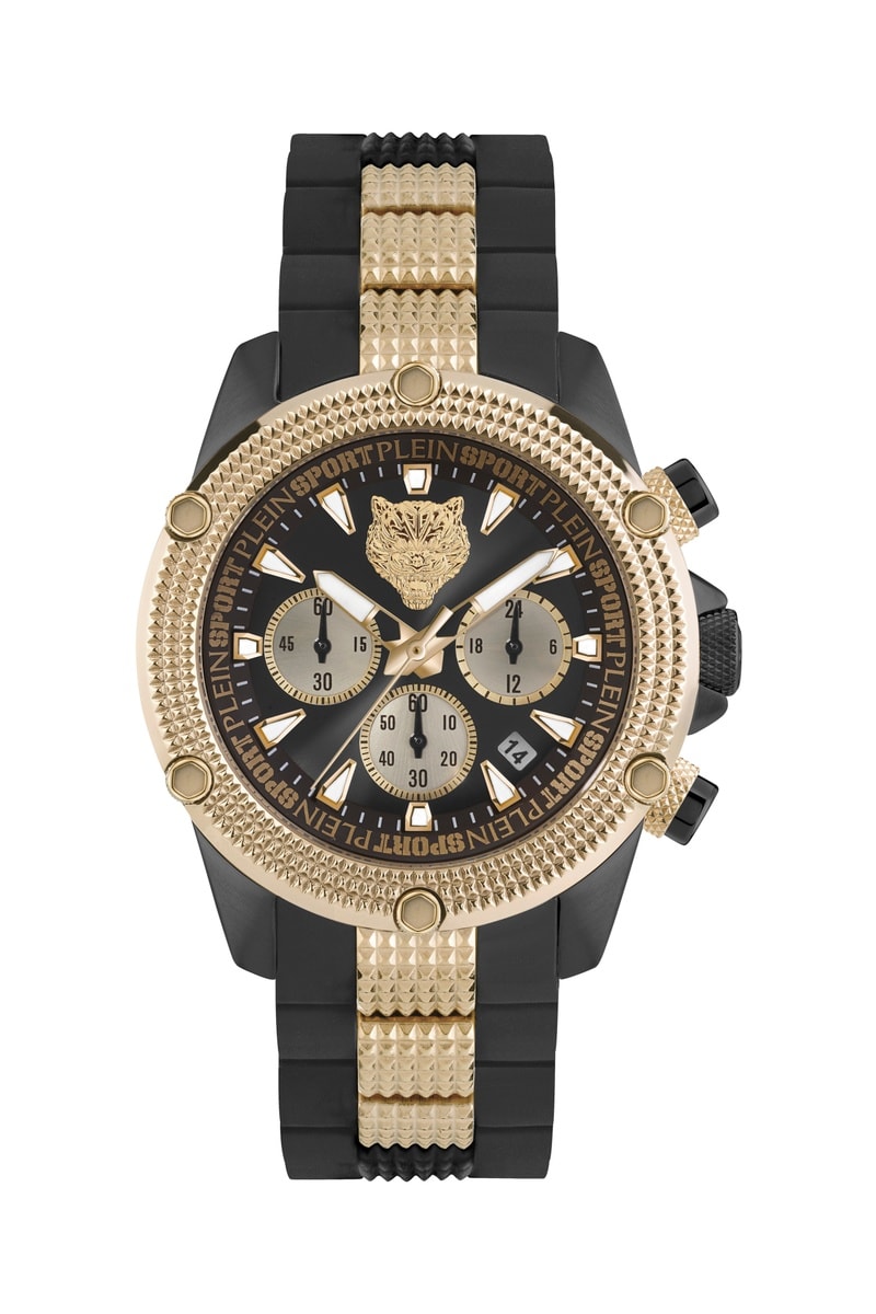 Montre à quartz en plaqué or jaune - Chronographe - Noir et doré