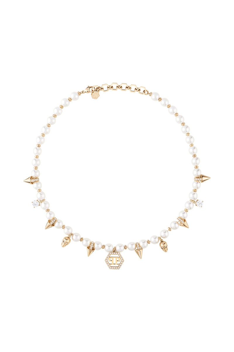 Matière : acier inoxydable recyclé doré à l'or jaune, perle d'imitation, zirconiums et cristaux