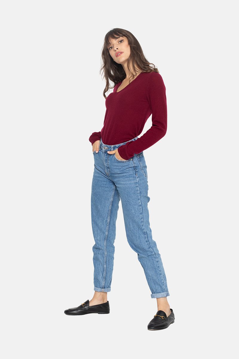 Pull Galise 100% cachemire, 2 fils - Col en V - Bordeaux