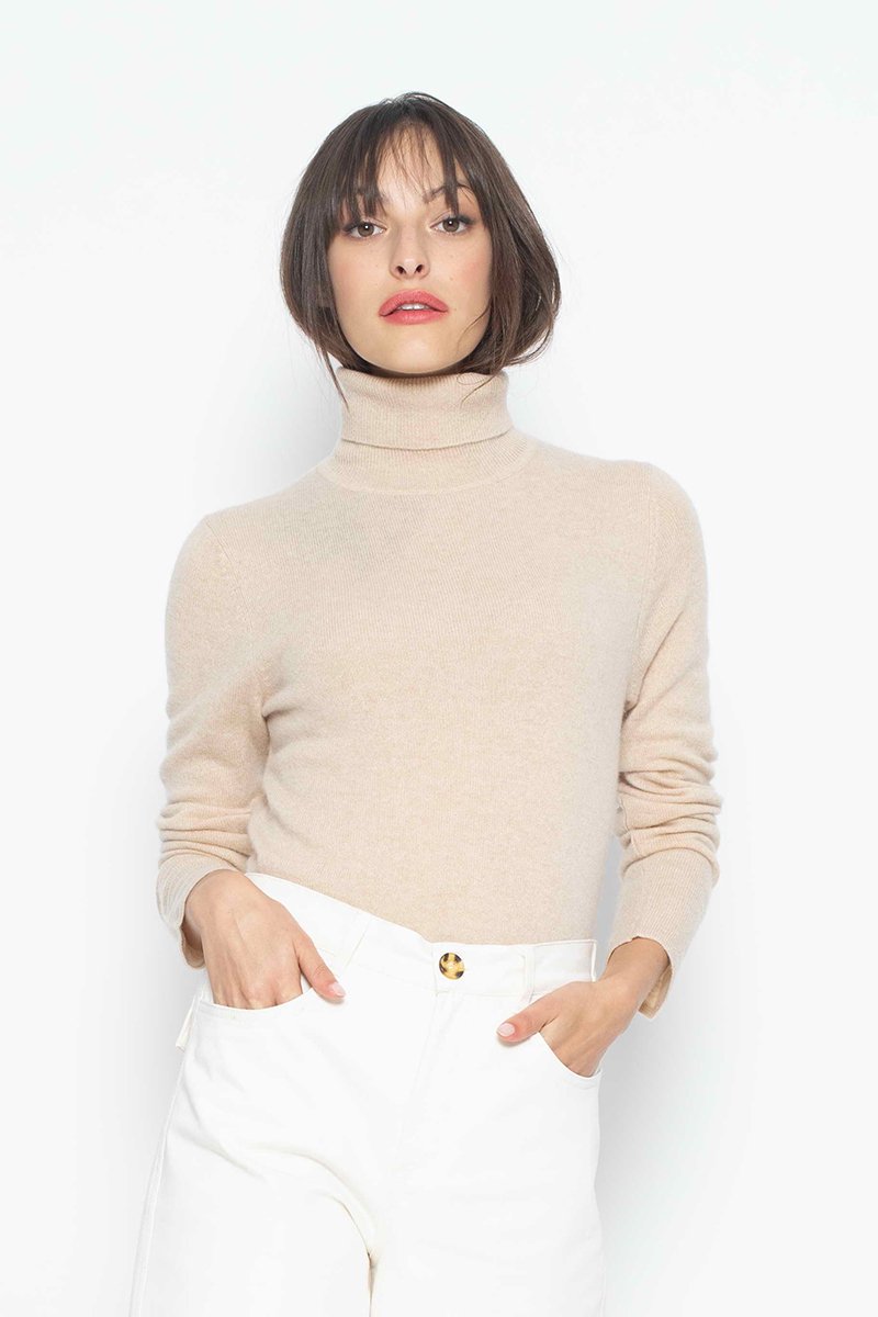Pull Bise 100% cachemire, 2 fils - Col montant - Beige