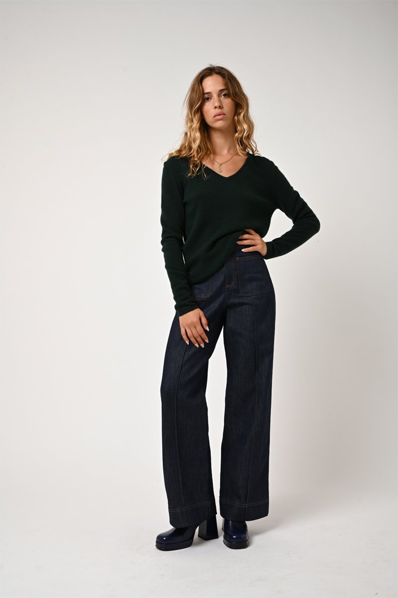 Pull Galise 100% cachemire - Col en V - Cyprès