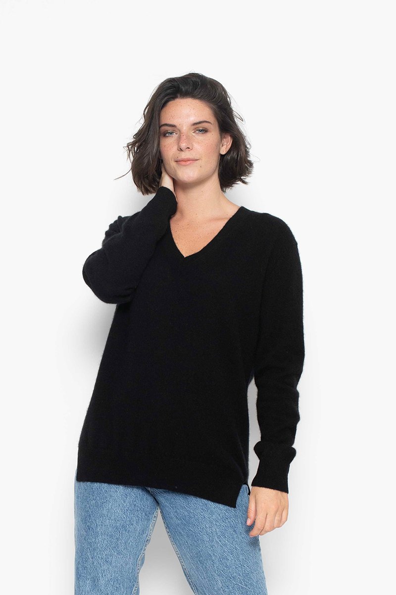 Pull Gardoria 100% cachemire, 2 fils - Col en V - Noir