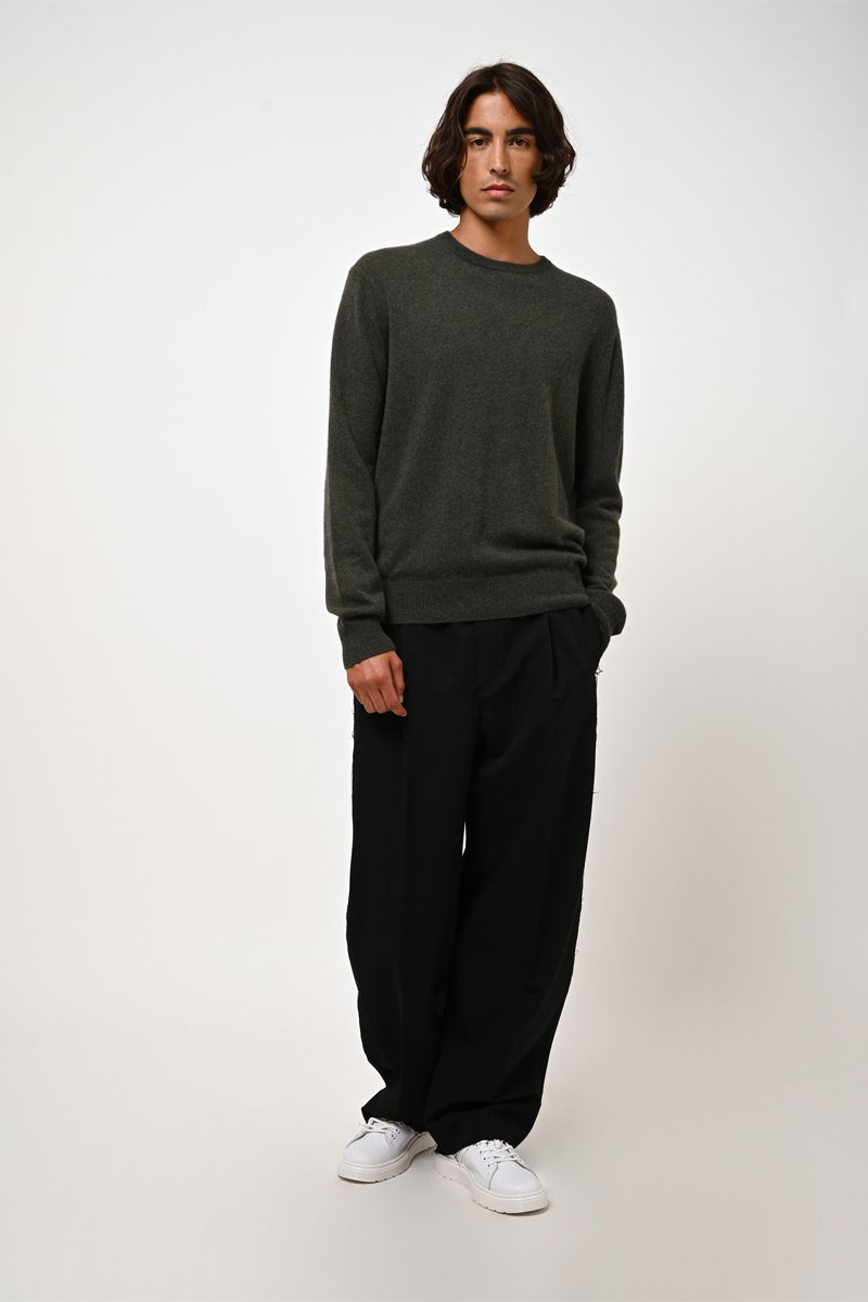 Pull Aiglière 100% cachemire, 2 fils - Col rond - Kaki chiné
