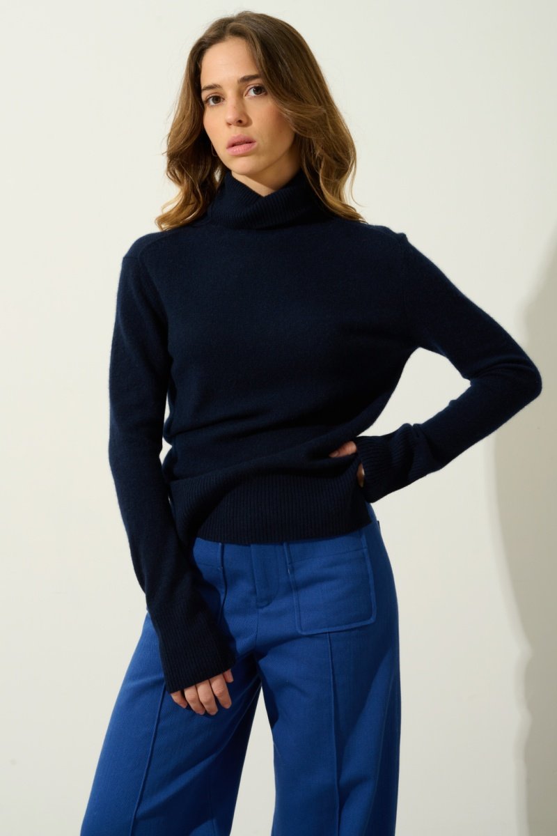 Pull Fornet 100% cachemire, 2 fils - Col montant - Bleu foncé