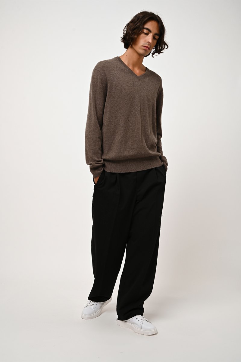 Pull Agel 100% cachemire, 2 fils - Col en V - Taupe chiné