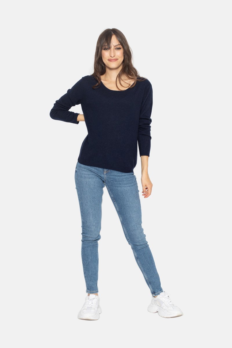 Pull Lanfon 100% cachemire, 2 fils - Encolure en U - Bleu marine